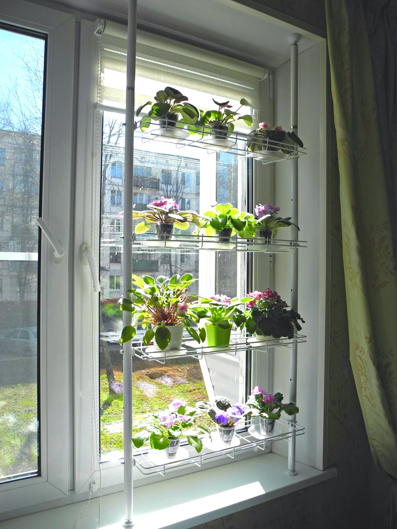 Только этот стеллаж может обеспечить размещение огромного количества растений на самом узком подоконнике.